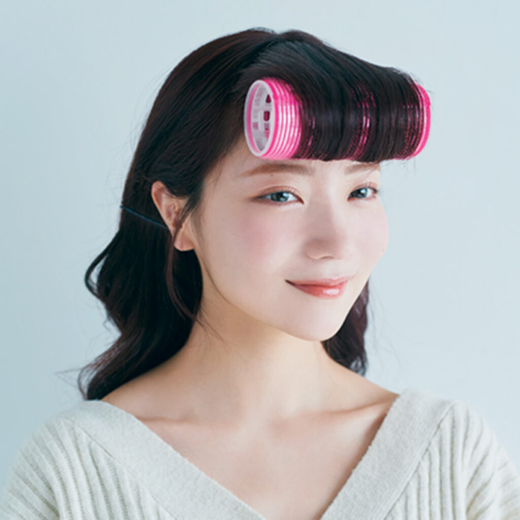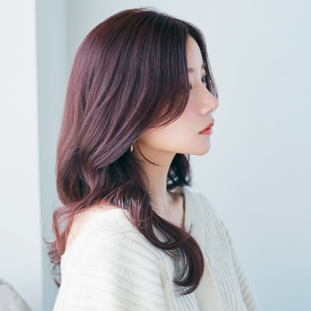 「前髪がない分サイドバングが顔にかかりやすいので少し長めにカット。長めなので毛先をしっかりとリバースに巻いて後ろに流すことができ、女度も高められます。」(AMA TOKYO代表・間嶋さん)