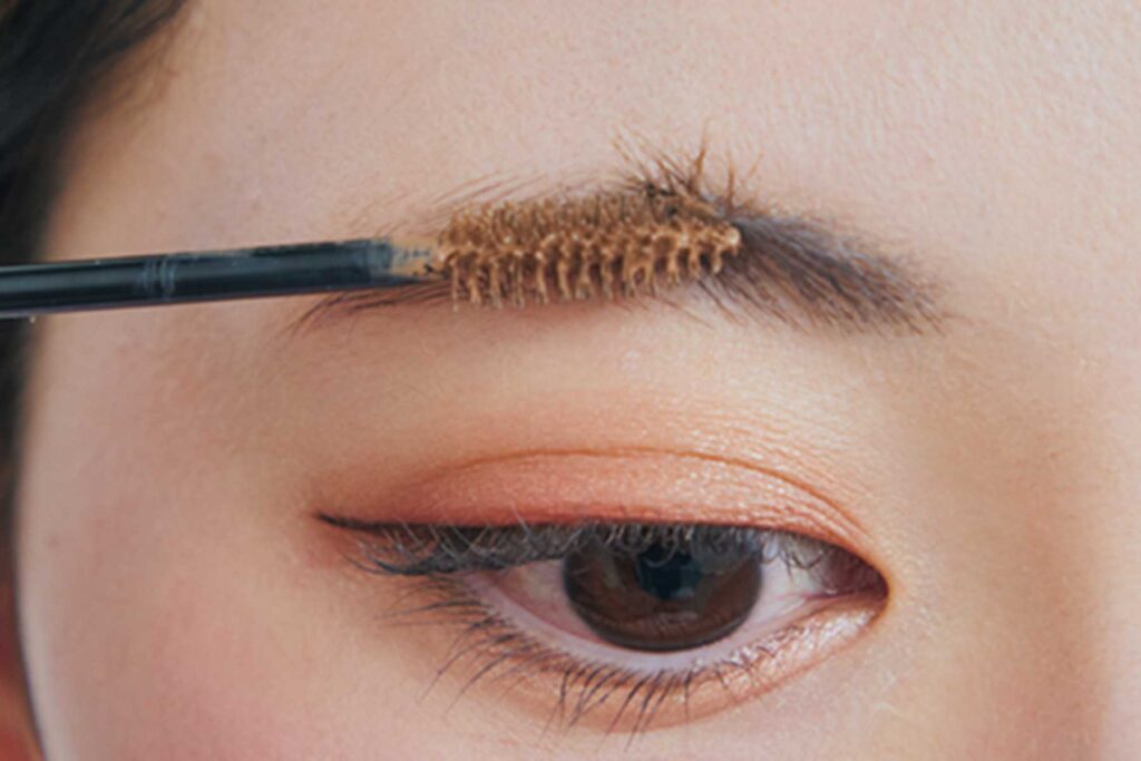 マスカラで眉と肌色のコントラストを抑えて。眉毛を描こうとせずに毛にふわっと〝のせる〟こと