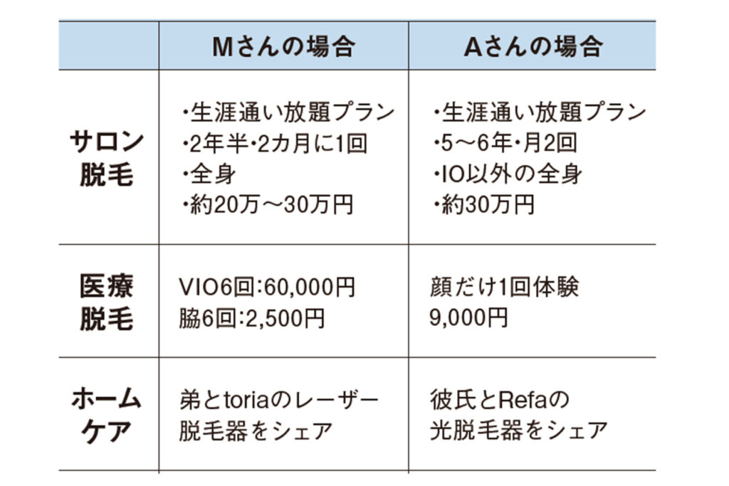 M:そうなんですよ。私はパートナーが〝毛なし〟派だったのと、母とも介護の話になって。今では母も脱毛検討中みたいです。