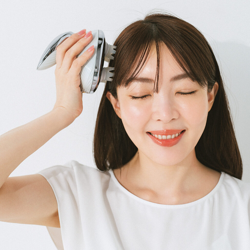 ヘッドスパの手技を再現したローラーが、凝り固まった頭皮をつまみ上げて〝頭筋膜〟をリリース。防水仕様でお風呂でも。リファビューテック ヘッドスパ ¥33,000(MTG)