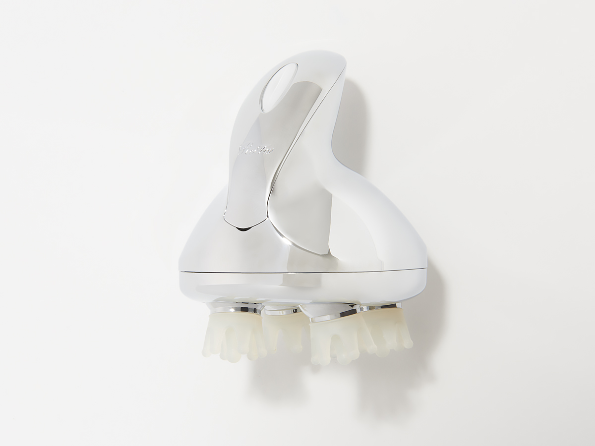 顔のたるみやむくみは頭皮のコリが原因のひとつ。しかも顔のケアよりも頭皮をがんばったほうがやりすぎで起こるトラブルも回避できるという利点も! この機器なら、3Dヘッドマッサージで4箇所同時に硬くなった頭皮をつまみあげて健やかな頭皮環境に整えてくれるんです。シャンプー時でもアウトバスでも使えるし、本当にヘッドスパに行った後のようにすっきり!副産物として、眼精疲労も解消されるから私は手放せません。¥29,800(MTG)