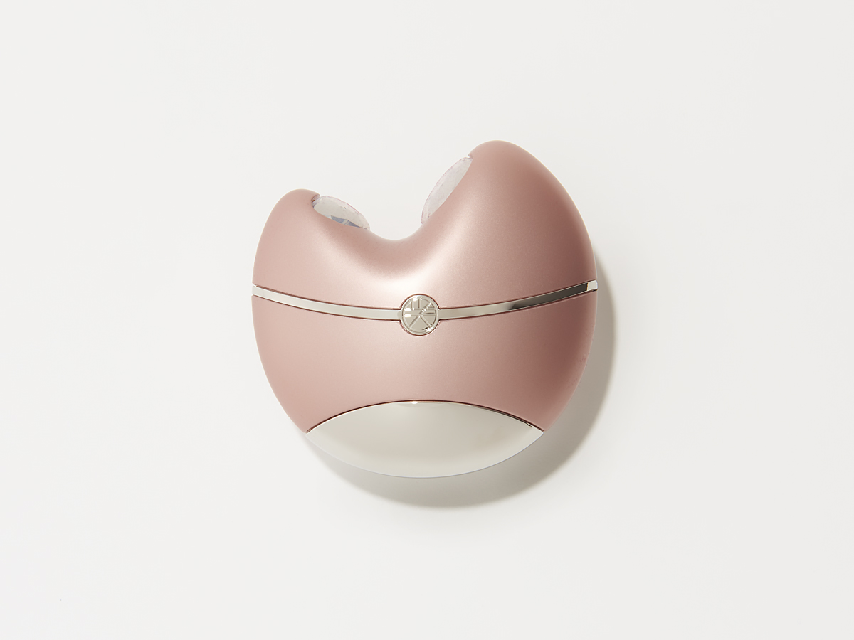 電動機器じゃないけど、ガチで顔がシュッとするのでセレクトさせてもらった逸品。フェイスラインにがっちりハマって引きあがる力強い動きがハンパなく、美容整形レベルで変化しますよ。一切力を入れなくて大丈夫だし、外出先でのケアもできちゃうから、隙間時間にササッとするだけでも。電動機器では肌と筋肉までしかケアできませんが、これなら骨までのケアができるというところもポイント高し。ピンク ¥18,000(コニー)