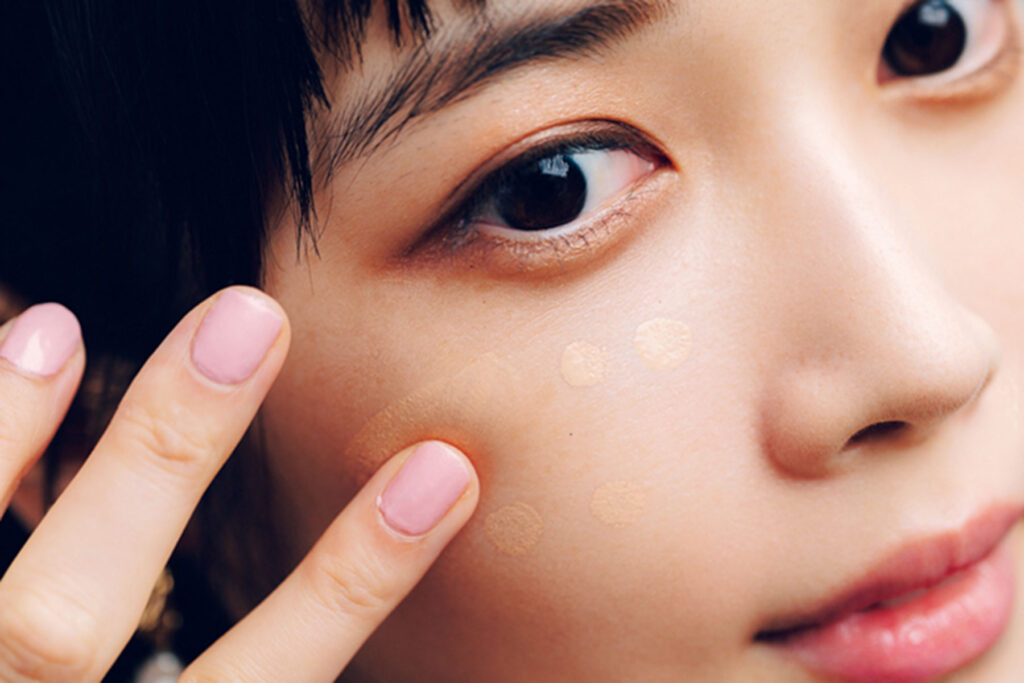 ①ファンデとしても使える美容液コンシーラー(モデル使用)