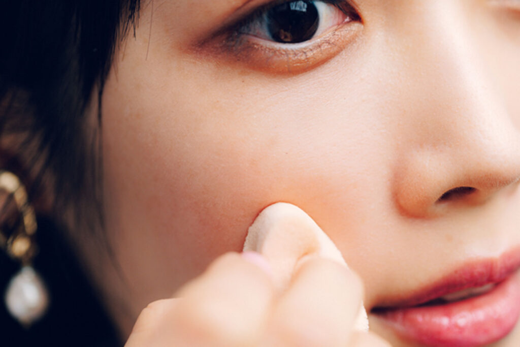 ②毛穴をぼかしながら、スキンケア効果を閉じ込める(モデル使用)