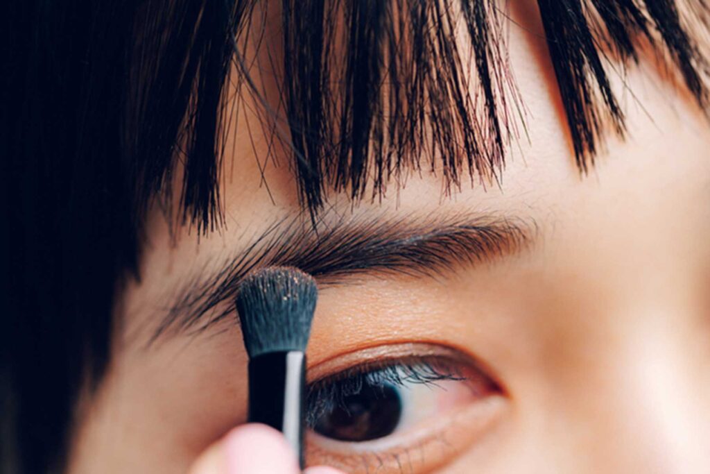 ③締め色の入った茶系シャドウなら眉にも使える!(モデル使用)