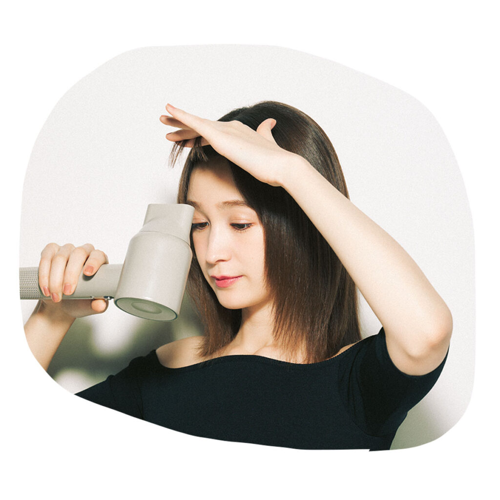 コテがなくてもドライヤーをあてるだけで前髪がいつものようにキマるテクもご紹介! 頼れるスタイリング剤があればよりキマるのでポーチに常備することをおすすめします。