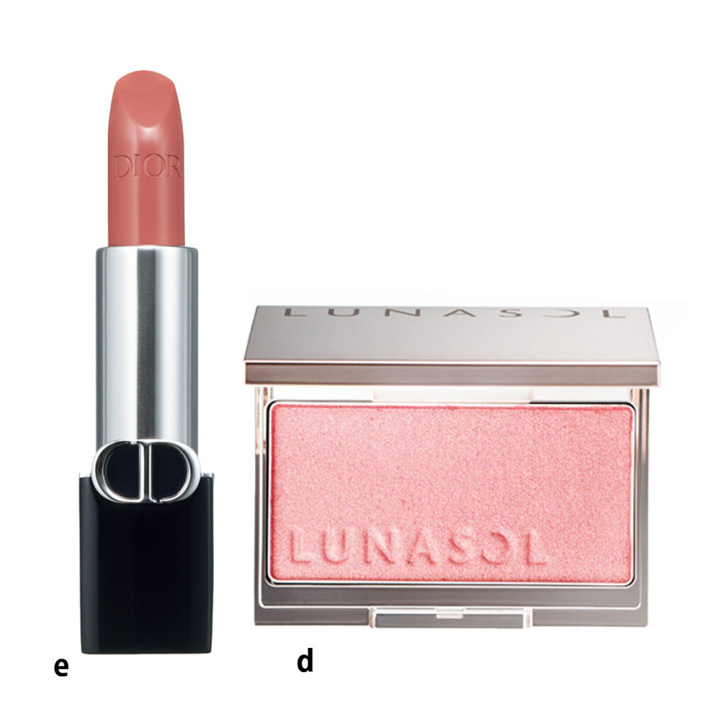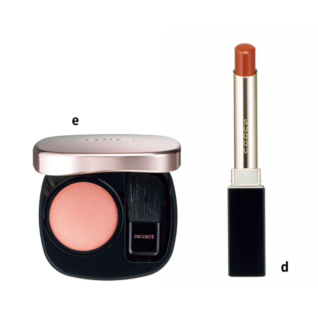 e.「頬骨少し高め、外側に向かってシャープに入れます。軽やかな色を選んで」コスメデコルテ パウダーブラッシュ 202 ¥5,500(コスメデコルテ)