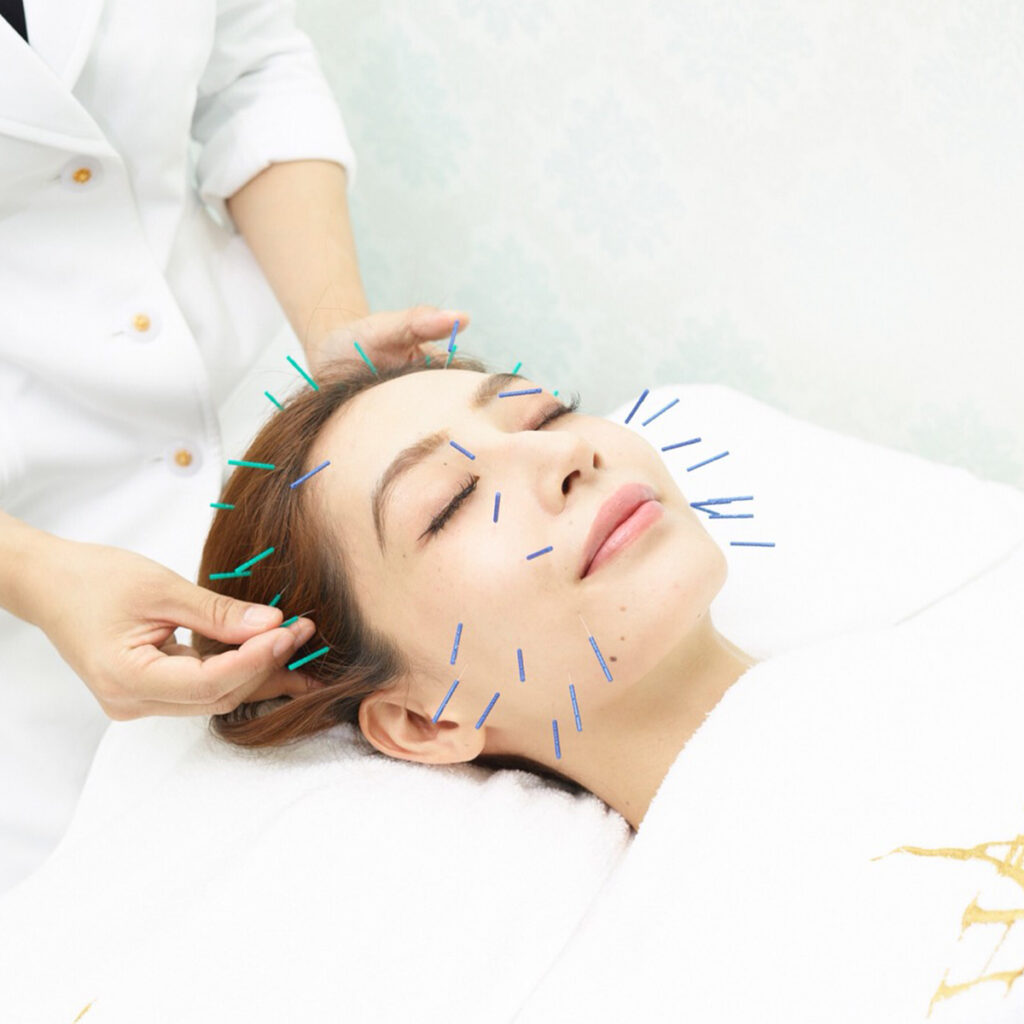 美容鍼とフランス式エステを組合せたオリジナルメソッド。「1回の施術でもきゅっと小顔になり、透明感が増し、ハリとツヤがカムバック。見違えるほどの変化があります」(今関さん)