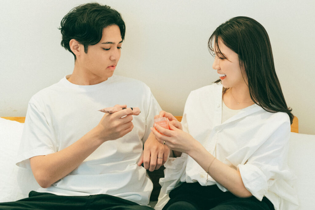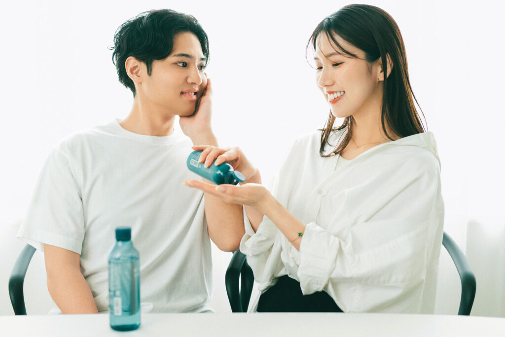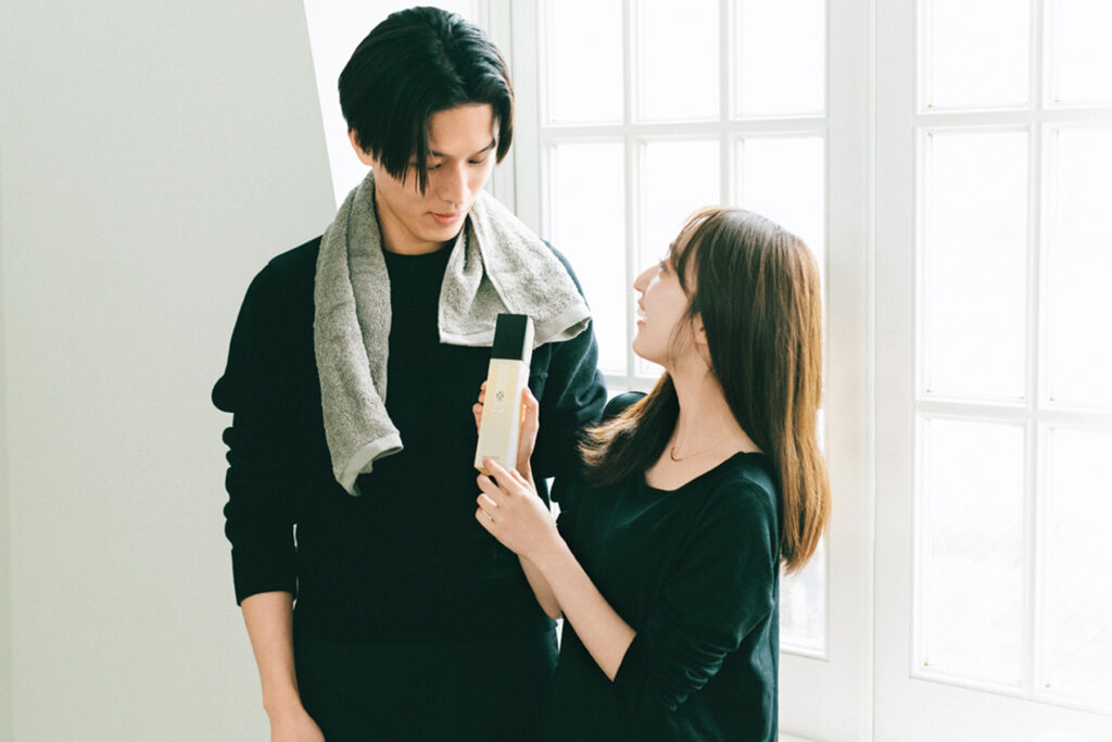 私の一目惚れからの猛アタックで交際をスタートし、付き合ってもうすぐ3年。現在同棲中です。私は美容皮膚科に勤務していて、美容全般が大好き。医療機関専売のスキンケアを洗面所にあれこれ置いているのですが、彼も「これ、しっとりするね」とか言いながら自然に使っています。男女問わず手に取りやすいデザインで、ベタつきや刺激のない使用感がいいみたいです。私もずっとキレイでいたいし、彼にもカッコよくいてほしい。いつまでも初心を忘れたくないから、もっと彼を巻き込んでシェア美容を追求していきたいです!