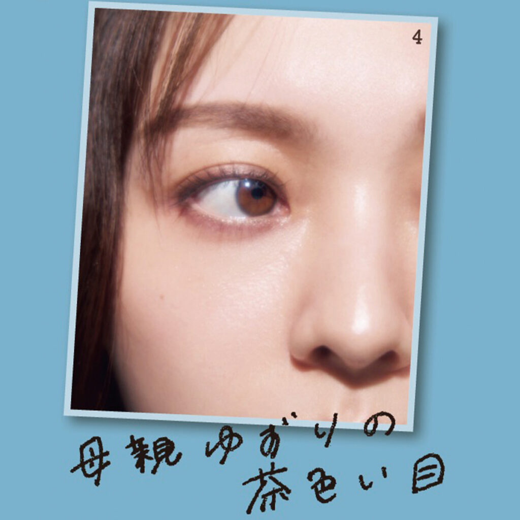 母との繋がりを感じる目の色、好きです。身長が高いので大人っぽく見られがちですが、目も顔の輪郭も唇も丸くて、意外と幼い顔だねと言われるので、メイクはキツくならないようにしています。