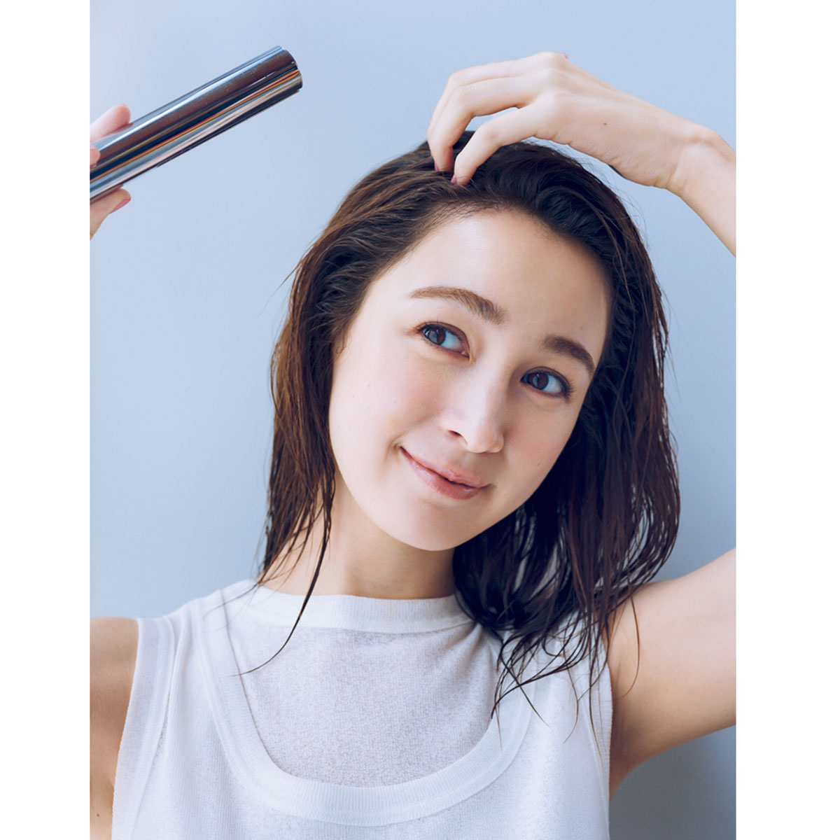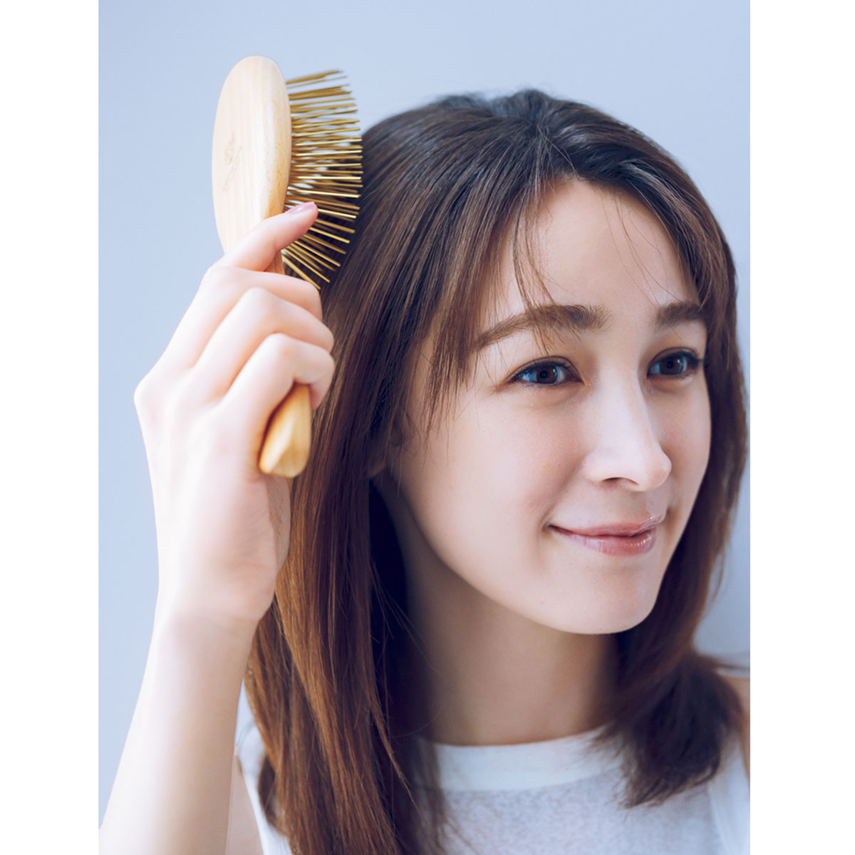 髪を濡らしてから絡まりをほぐそうとするとキューティクルが損傷するため、まずはブラッシングがマスト。毛先の汚れを取りつつ、サラサラに。硬い土壌を耕すイメージで、根元を起こしながら頭皮をマッサージ。頭皮をほぐすことで、根元の汚れが落としやすく。