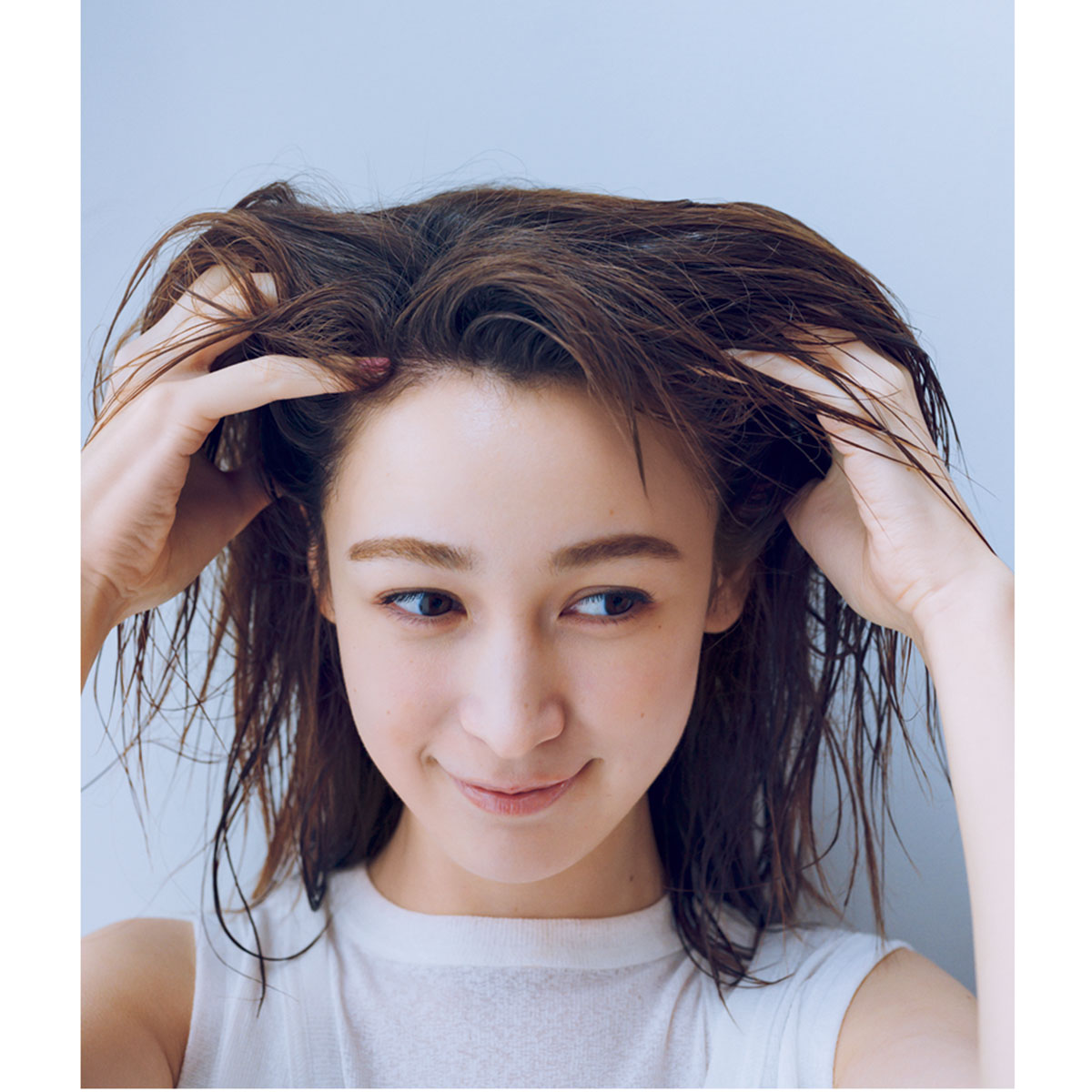 泡立ち不足な人も多いので念入りに。1プッシュ(ロングヘアは2プッシュ)を掌で水を足し少し泡立てる。頭皮を洗うことを意識して、下からから頭頂部に向かって空気を入れて動かすのがコツ。毛先は泡を揉むようになじませて。