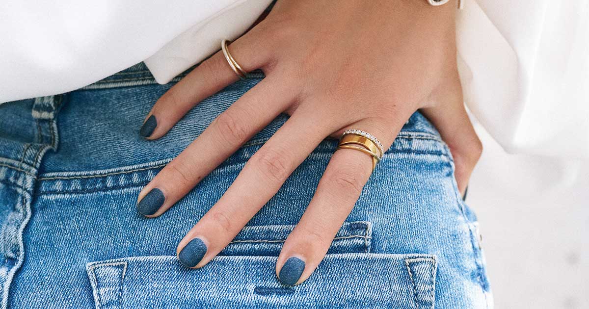 ほぼ毎日、デニムをはいているからこそ、手元にはカジュアルすぎない色を。デニムにマッチするインディゴカラーはマットな仕上がりになるのがお気に入り。爪先とボトムスをワントーンにするとコーデの印象もまとまります。