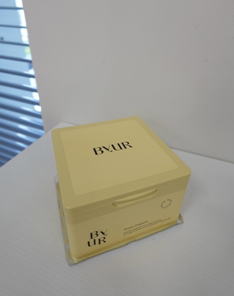 「美容液がたっぷり入っていて、薄めのシートが肌に高密着。翌朝の肌は潤って、メークのノリが違います。肌に優しくてコスパも高いので、毎日使いやすい!」 乾燥による毛穴やゆるみにアプローチするマヌカハニーやプロポリス、ローヤルゼリーなどの蜂蜜エキスがイン。ヴィーガン認証された超軽量シートはつけ心地が快適!バイユア プランプハニー デイリーアクアセラムマスク 30枚入り¥2,420(本人私物)