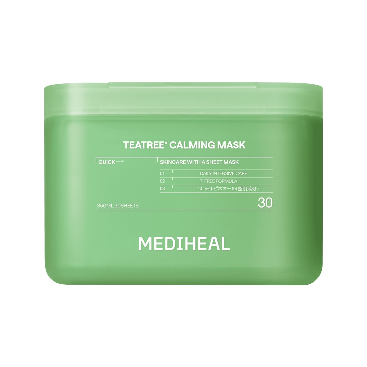 鎮静効果のある純度99%のティーツリー成分やアゼライン酸入りで、ニキビや肌荒れが気になる人の集中保湿ケアに最適。男女問わずにつけやすい爽やかなティーツリーの香り。ティーツリー カーミングマスク 350ml 30枚入り¥2,640(メディヒール/韓国高麗人蔘社)