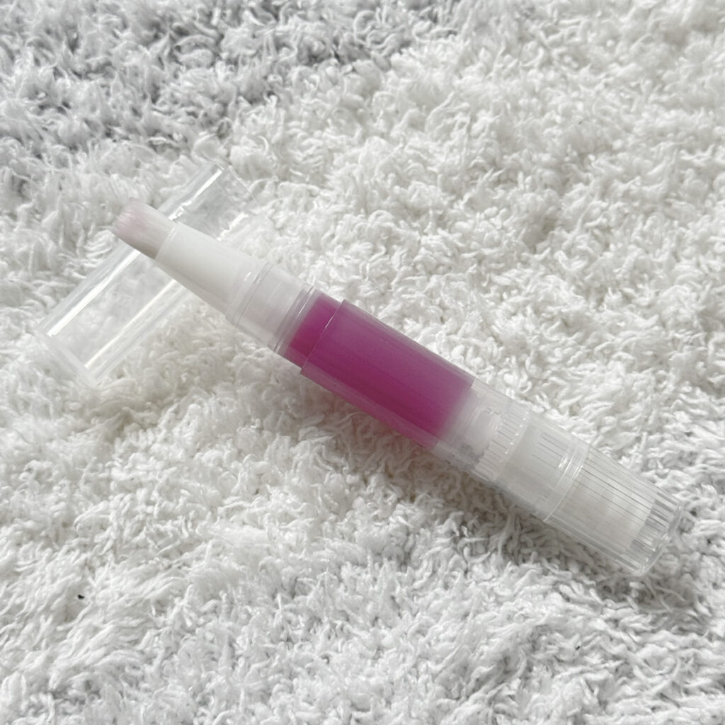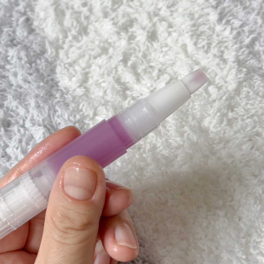 手に持ちやすいペンタイプ&筆の太さが絶妙で、時間がないときでもささっと塗れるのがありがたいこのネイルオイル。カチカチっとお尻のダイヤルを回すと、筆部分にオイルがじゅわっと染み出し、そのまま指先に塗れるので、ケアが本当に手軽! オイルに固さがあって、液だれしにくいのも高評価ポイントです。