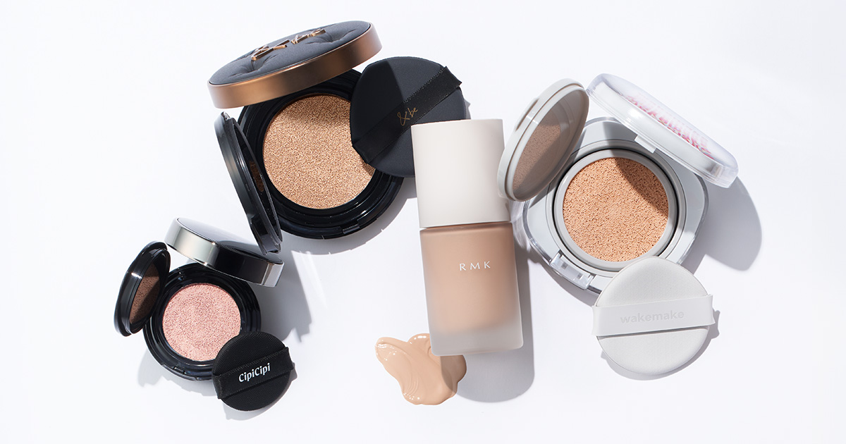 “厚塗り感なく”色ムラをカバーしたい人には、wakemakeのシームレスウェアクッションがイチオシです!韓国ブランドなのですが、パフでしっかり叩き込むと薄いのにしっかり膜ができて、厚塗り感は出ないのにちゃんとカバーできる。セミマットな仕上がりで肌表面がベタつかないので、暑い秋から使えると思います!(室橋さん)