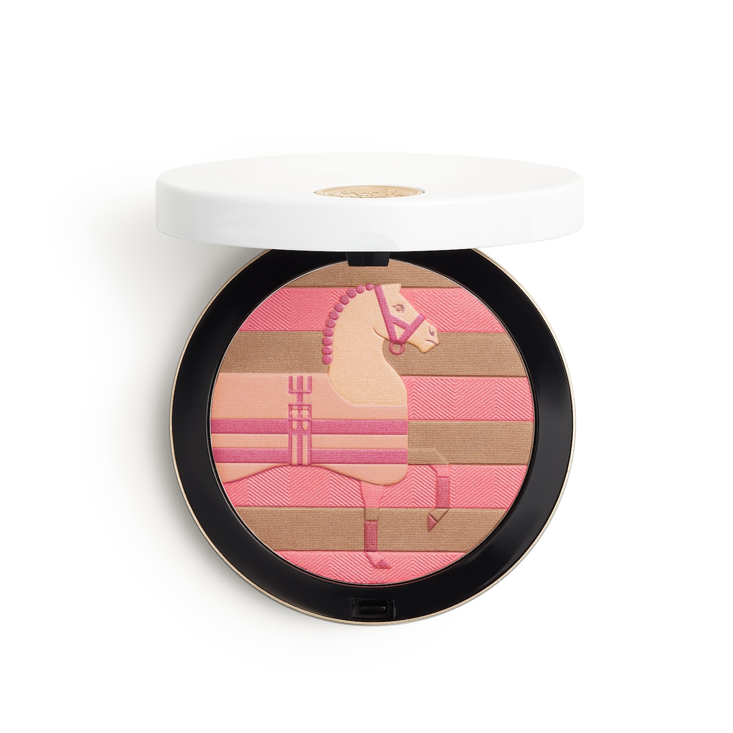 「プードル ロカバール」のグラフィックは主に4つの色で構成され、表面をカバーする5色目の色が、馬の精緻で繊細なディテールを留めています。太陽の光を纏ったような5つの色と、ピンクがかったマザーオブパールの粒子が、肌に明るさと温かみをもたらし、どんな肌色にもなじむトーンが、健康的で自然な輝きを演出します。(※)
