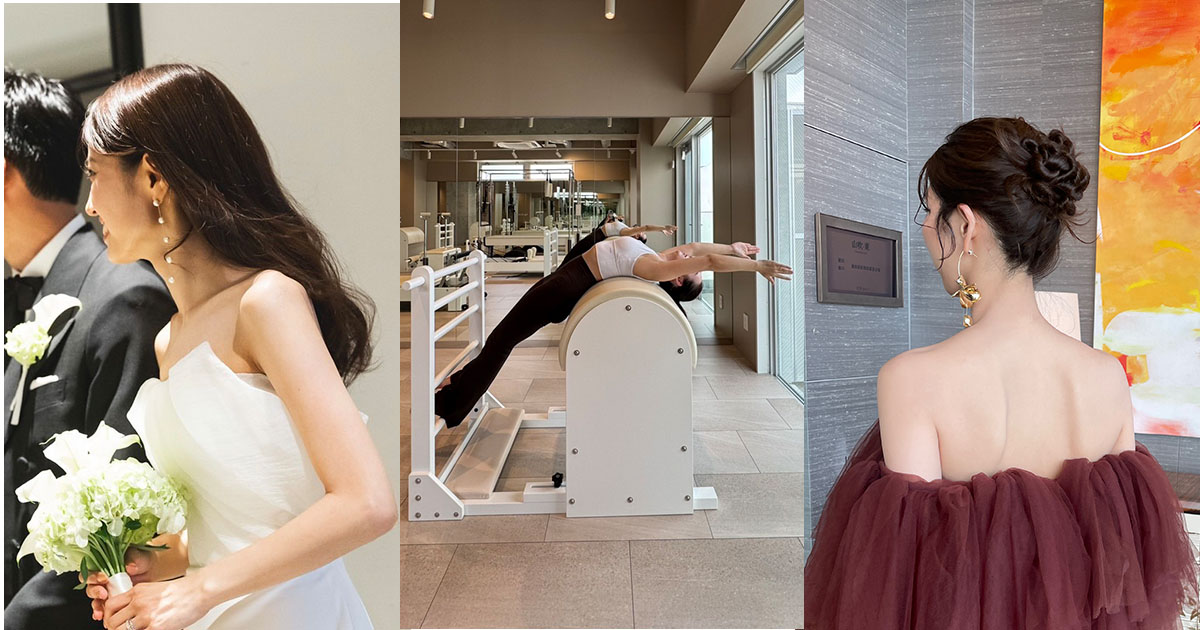まだ式まで時間があるので、ピラティスを再開し体作りから。巻き肩や首のコリが改善され、肋骨の開きが正しい位置に戻りウエストも細く!