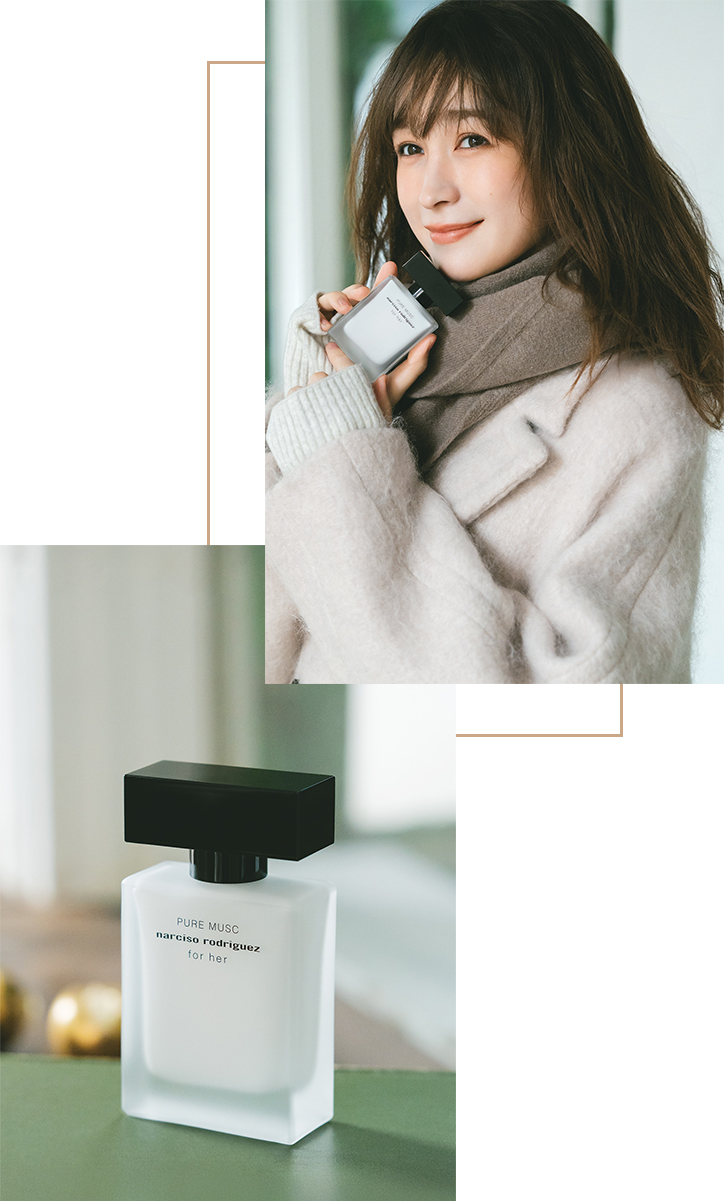 〝エレガンスの建築家〟と呼ばれた「ナルシソ ロドリゲス」のインスピレーションの源は〝女性〟。ブランドを代表する「フォーハー」シリーズは、肌にまとったときに魅力を発揮するムスクを中心に構成された、モダンな香りが特徴的。「ピュア ムスク」は、オレンジブロッサムやジャスミンなど白い花々のブーケを幕開けに、ミドルでムスクが洗練された魅力を深め、ラストでカシュメランの温かさが包んでくれる、軽やかなシプレームスキーです。