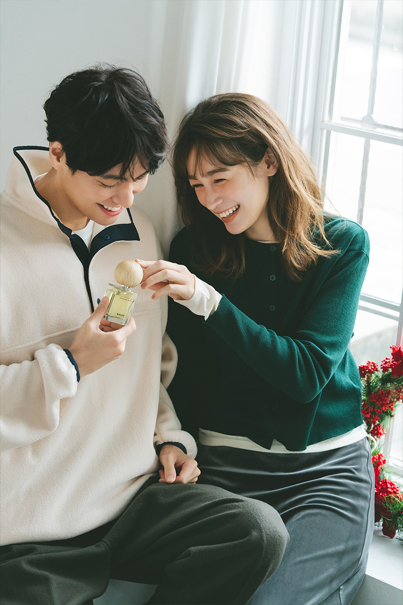 この日のためにいろいろ集めたデコレーションをお部屋に飾って、ゆっくりした時間が流れる幸せなひと時を。リラックス感のあるホリデーになじむのは、森林浴みたいな落ち着く香り。空間にプッシュして香りの霧の中をくぐるようにふわっとまとえば、まるでアロマのような香り。