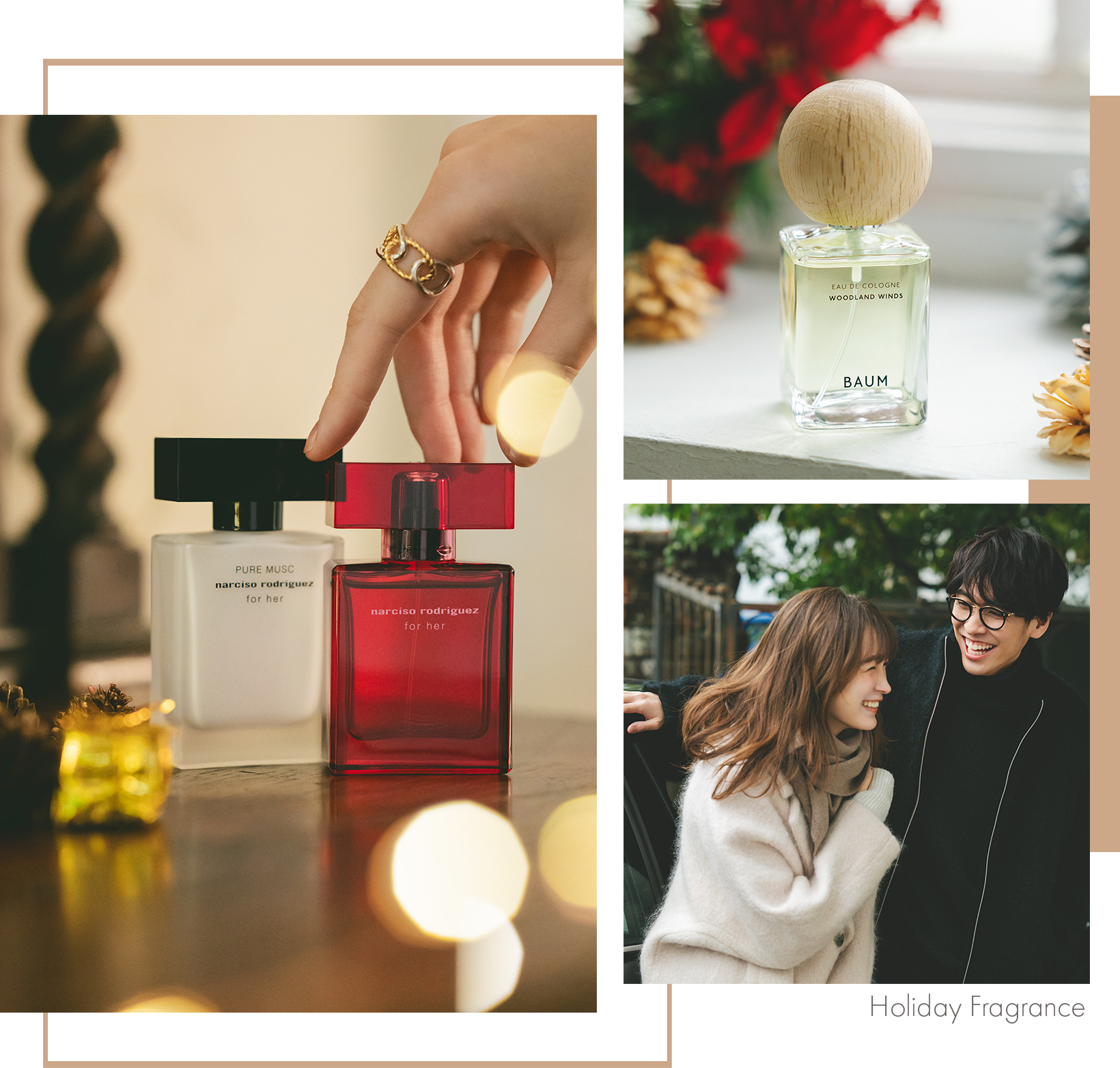 街がキラキラとした高揚感に包まれるホリデーシーズン。特別な過ごし方を計画中のあなたへ…より記憶に残る一日にするために、おすすめしたいのが〝香り〟。 資生堂オンラインストアで大人気の「ナルシソ ロドリゲス」と「BAUM」から、大人のカップルにぴったりのアイテムをご紹介。