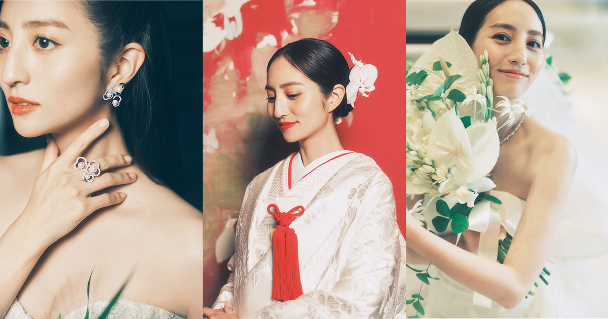 「モダンでありつつ、いつ見返しても美しいバランス感を意識してセレクトしました」という堀田茜さんの結婚式メイクをご紹介!挙式・披露宴のドレス&和装を彩った「華やかコスメ」とは?