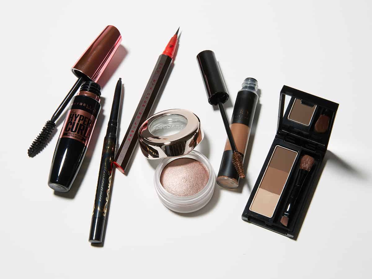 【右から】ケイト デザイニングアイブロウ3D EX-5 ¥1,100〈編集部調べ〉同 3Dアイブロウカラー BR-1 ¥850〈編集部調べ〉(ともにカネボウ化粧品) コスメデコルテ アイグロウジェム BE385 ¥2,700(コスメデコルテ) UZU アイオープニングライナー ブラウンブラック¥1,500(UZU BY FLOWFUSHI) マジョリカ マジョルカ ラインマニア BK999 ¥950〈編集部調べ〉(資生堂) メイベリン ボリューム エクスプレス ハイパーカール ウォータープルーフ N 01 ¥900(メイベリン ニューヨーク)