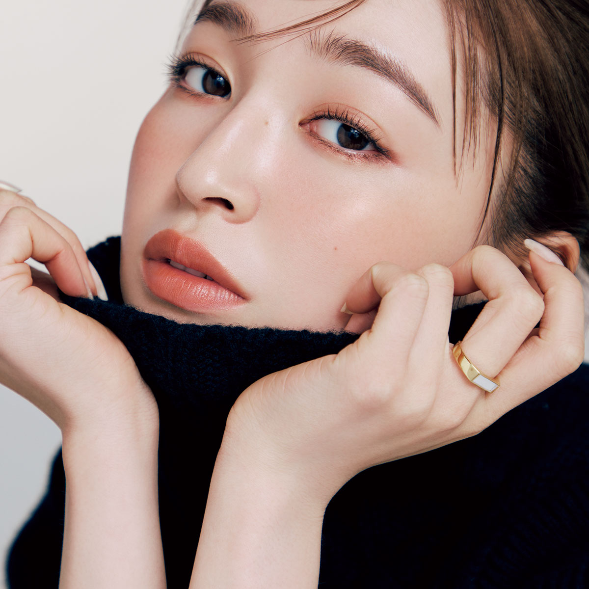 【モデル衣装】ニット¥39,600(スローン/ザ ショップ スローン 自由が丘)リング¥26,400(イットアトリエ/フォーティーン ショールーム)