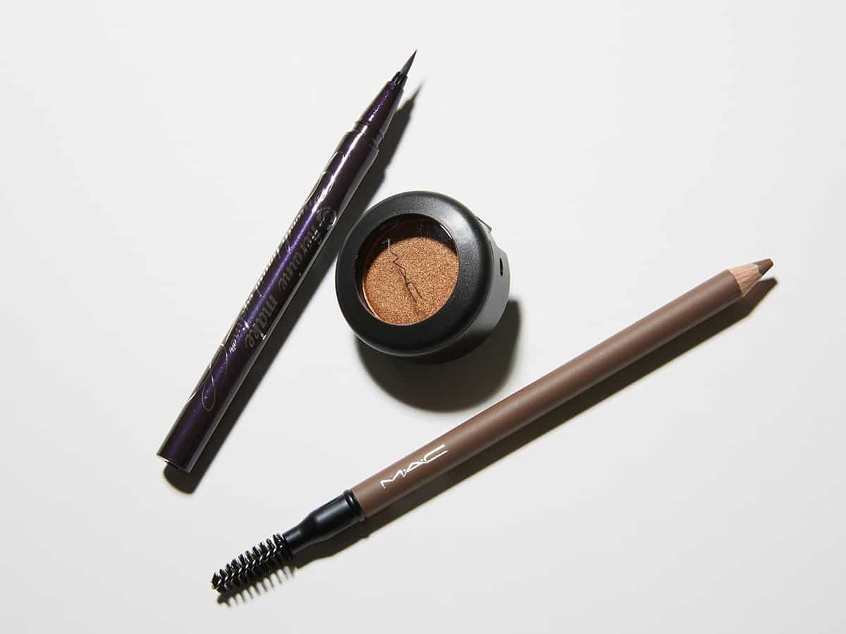 【右から】ヴェラックス ブロウ ライナー ダーティブロンド¥2,800スモール アイシャドウ アンバーライト¥2,500(ともにM・A・C) ヒロインメイク スムースリキッドアイライナー スーパーキープ 01 ¥1,000(KISS ME/伊勢半)