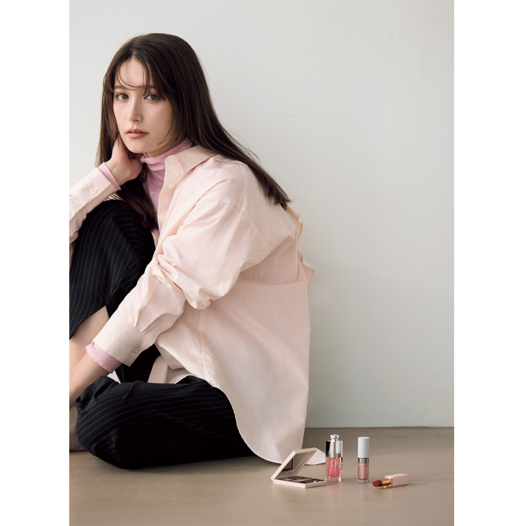凛とした空気感を纏った甘さ控えめのピンクメイク