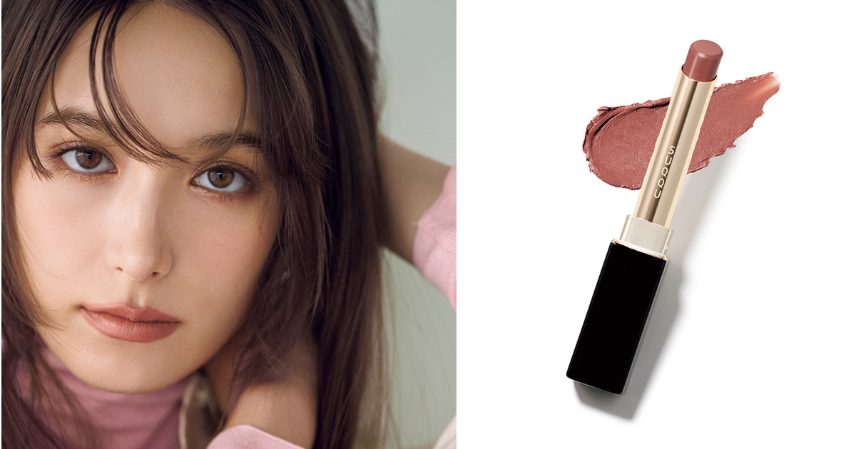 ベルベットのようななめらかさで色づき、気品を感じる血色をプラス。温かみのあるベージュトーンで、どんな肌色やメイクともマッチしやすいのが特徴。塗りやすいスリムな形状も便利です。¥5,830/SUQQU