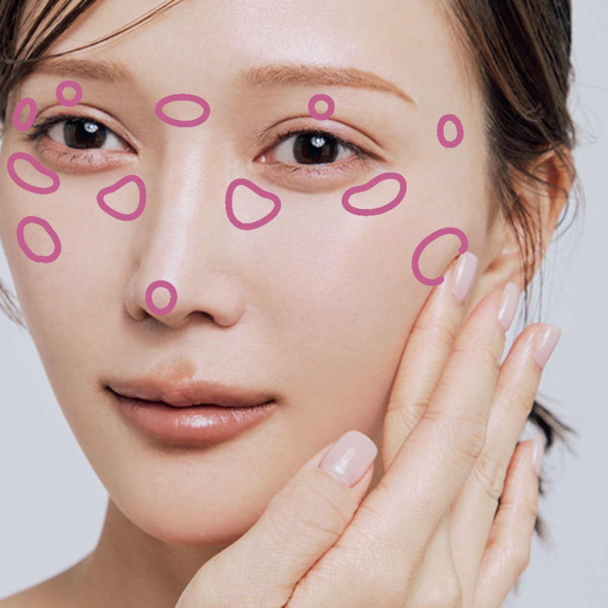 20代後半からじんわり気になり始める凹みには、明るさを仕込んでパンプアップ。上半顔にラベンダーの光を細かく入れることで視線を引き上げ、ほうれい線やマリオネットラインのたるみを自然にカモフラージュ。使用アイテムと使い方をご紹介します!