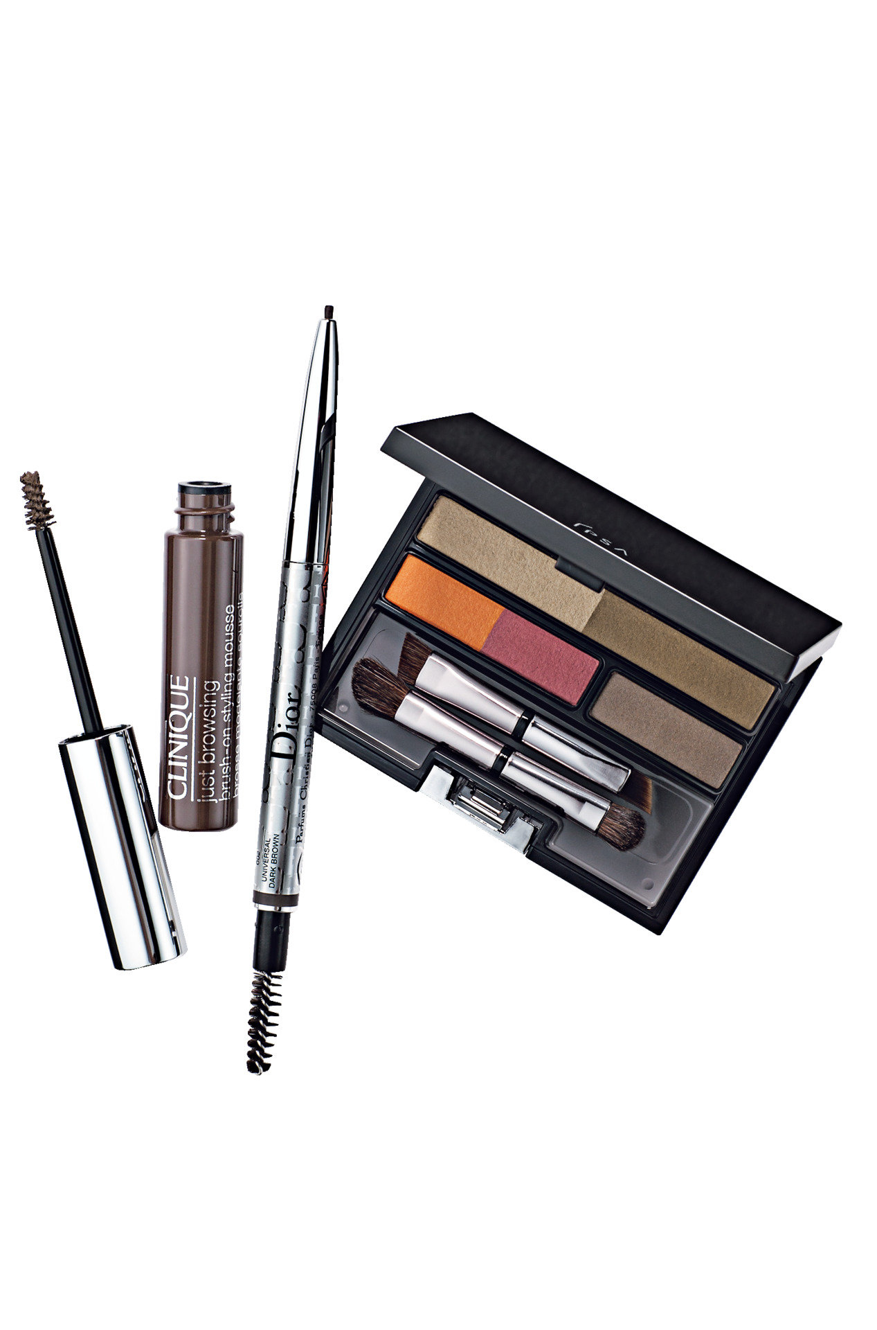 <左から>細い毛にもしっかり密着。ジャスト ブロージング ブラッシュ オン スタイリング ムース 03¥2,200(クリニーク ラボラトリーズ)眉メーク初心者にも使いやすい1本。ディオールショウ ブロウ スタイラー 002¥2,900(パルファン・クリスチャン・ディオール)眉全体と眉尻の形、眉頭の陰影、眉毛の色にこだわった5色がセット。アイブロウ クリエイティブパレット¥4,200(イプサ)