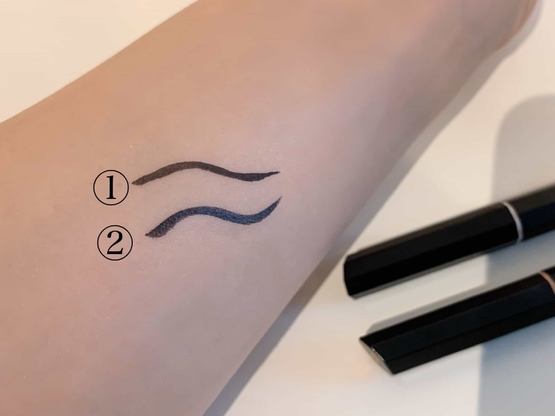 ①がマットタイプで②がノーマルタイプです。マットリなップに合わせて目元もマットにしてみたり、ファンデをツヤっぽくする時は、あえてマットなアイライナーで締めてみたり…マスク生活で目元に注目がいく今だからこそ、新しいアイメークにトライしてみては?