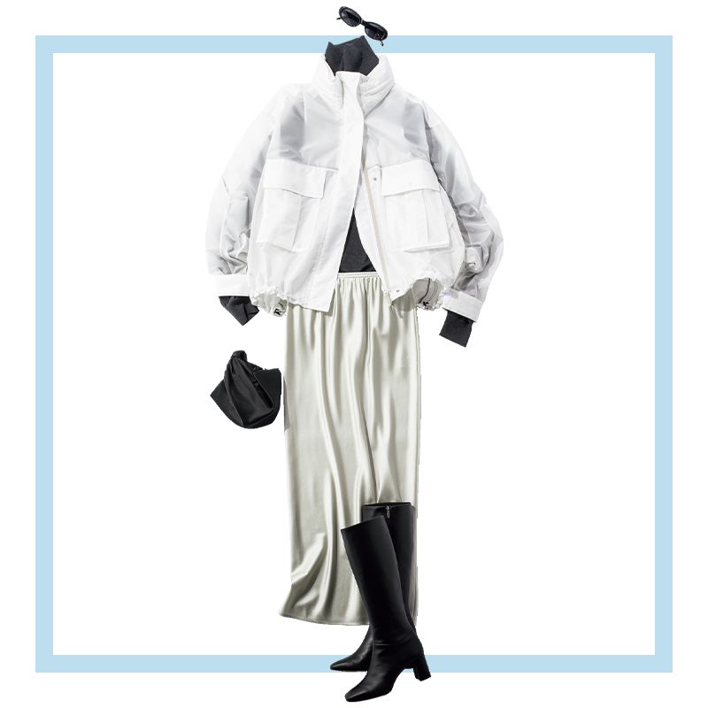 『白いシャカシャカ』活用術!キレイめコーデに羽織るだけで更新感