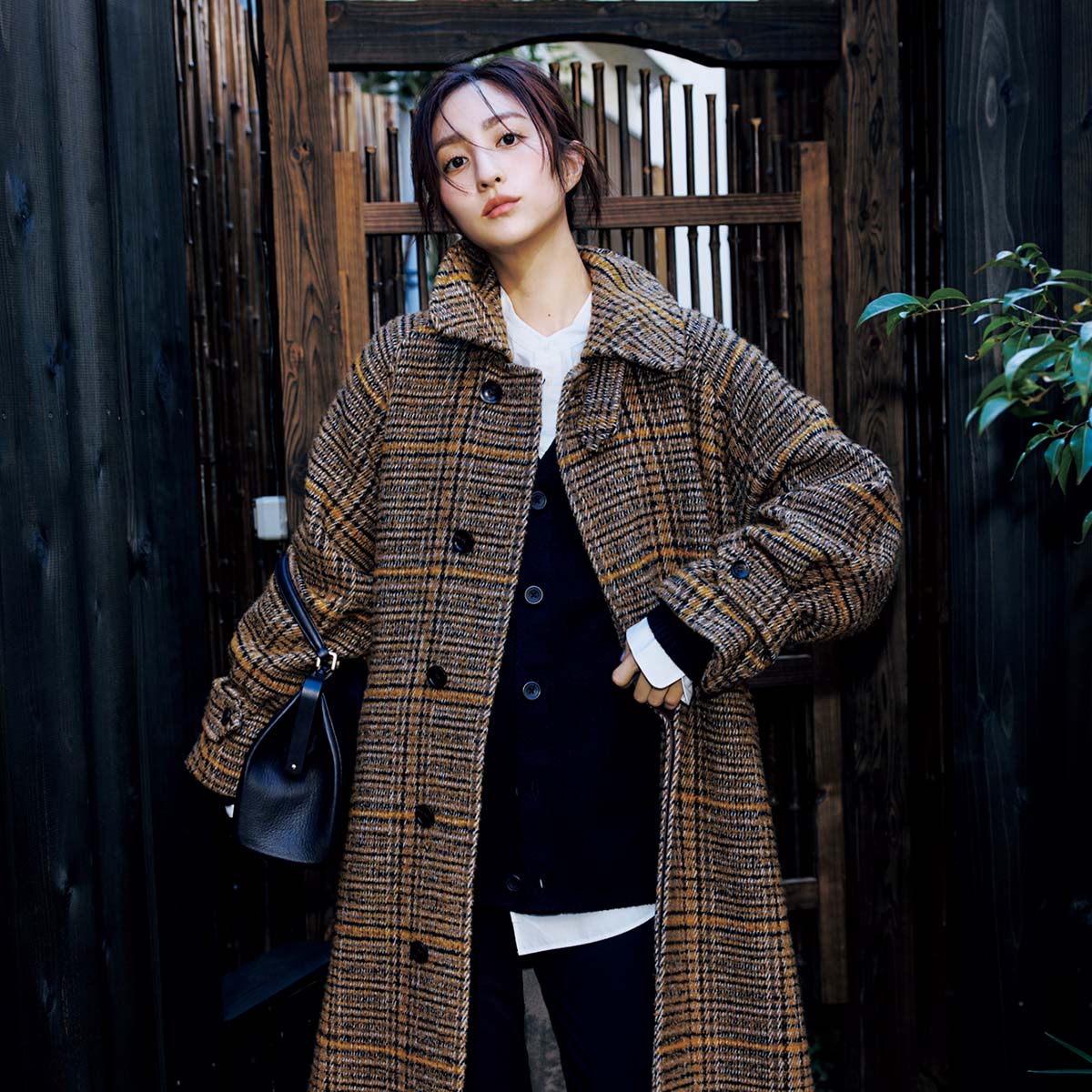 【梅澤美波さん】シーンレスで活躍する人気『ノーカラーコート』で上品コーデ