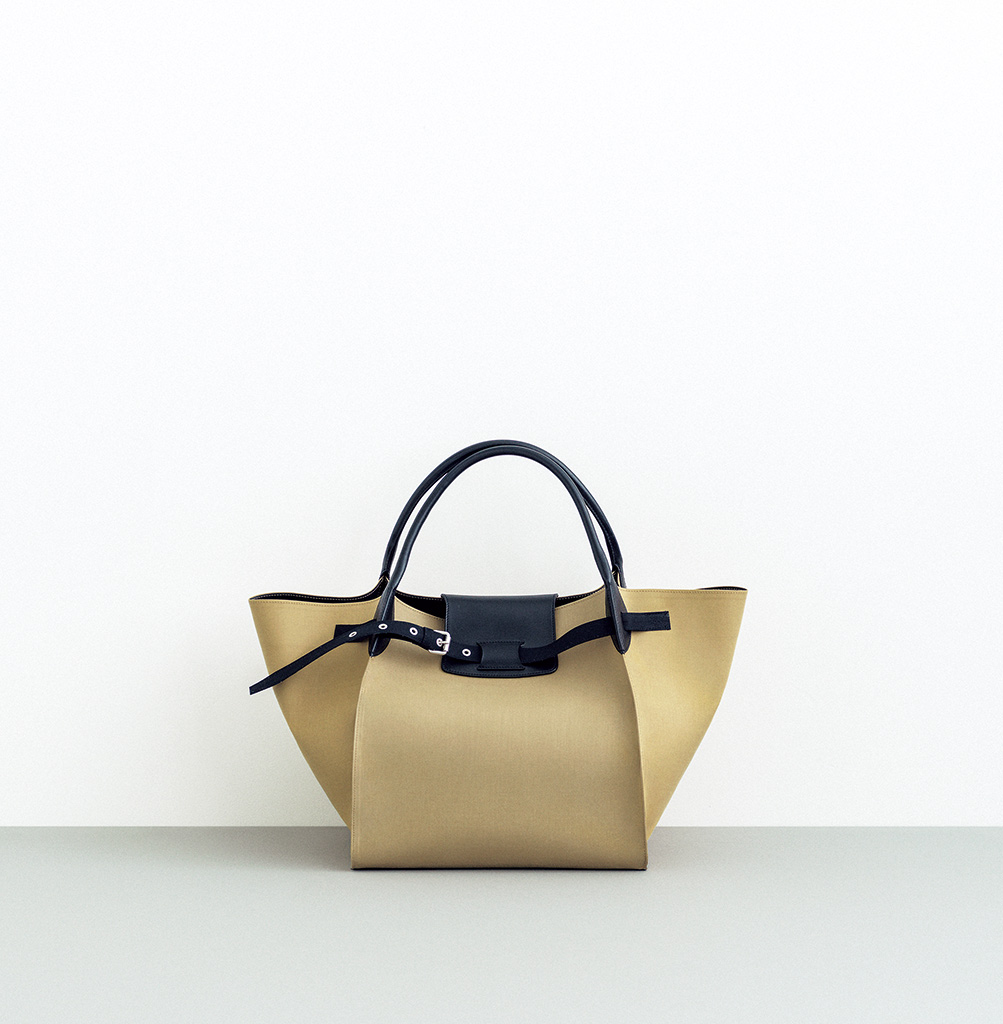 2017年、Winterコレクションで発表された新作「ビッグバッグ」。その名のとおりビッグサイズのトートバッグは、上質な一枚革を贅沢に使用しているのが最大の特徴です。写真の品は、そんな定番を進化させた、素材に撥水加工を施したレインコートファブリックを採用しているもの。くたっとした独特の風合いが、絶妙なニュアンスをかもし出しています。バッグ「ビッグバッグ レインコートファブリック ミディアム」〈H32×W32×D29cm〉¥305,000(セリーヌ/セリーヌ ジャパン)※以下、文中の表記はH=タテ、W=ヨコ、D=マチです。