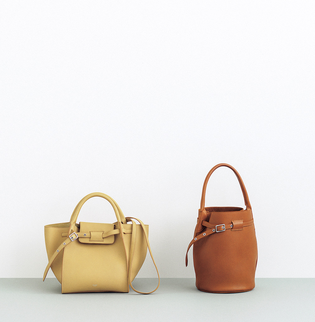 上の定番のフォルムをアップデートさせたのがこちらの二品。ともに革本来のしなやかで無垢な美しさが最大限に活かされています。新たに加わった左のスモールサイズは、ストラップ付きで肩からもかけられます。バッグ右「ビッグバッグ ソフトベアカーフスキン バケツ」〈H29×W22×D22cm〉¥305,000 バッグ左「ビッグバッグ サプルグレインドカーフスキン スモールロングストラップ」〈H25×W24×D22cm〉¥305,000(ともにセリーヌ/セリーヌ ジャパン)