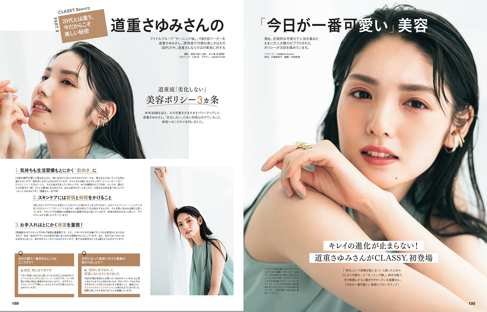 「“劣化”という言葉は私にはない」と語ったとおり、とにかく可愛かった「モーニング娘。」時代を経て、その美貌にさらに磨きがかかっている道重さゆみさん。「今日が一番可愛い」秘密を引っ提げて、CLASSY.に初登場です。