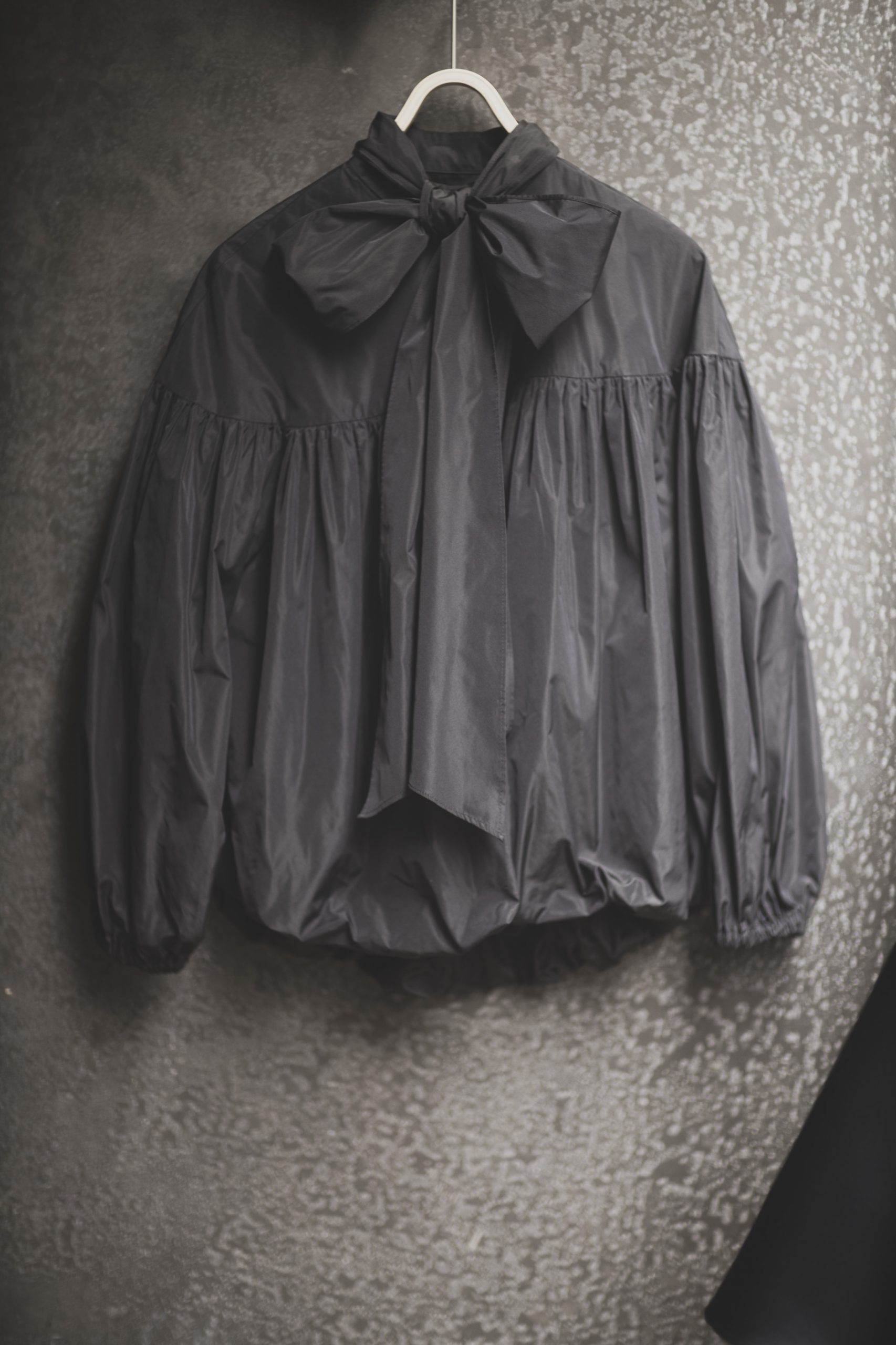 「ただ、以前はリボン=ガーリーだったけど、今はリボン=モード。ひとクセアイテムとして取り入れるようにしています。そういう意味でこのリボンは思い切りよく大きいのがいいんですよね。シャカシャカした素材でキレイめすぎず、バルーンシルエットなのも素敵。あとは色ですね、やっぱり黒。リボンの服は黒と白を二色買いすることもあります(笑)」