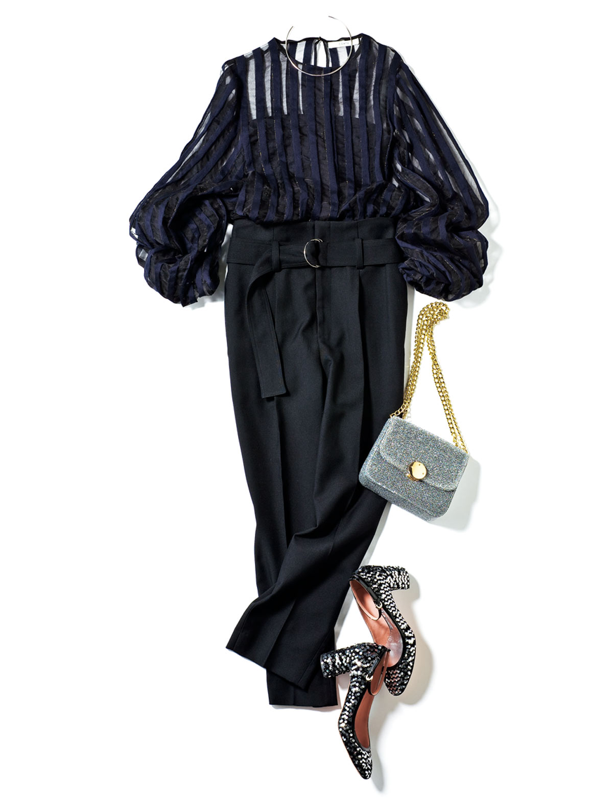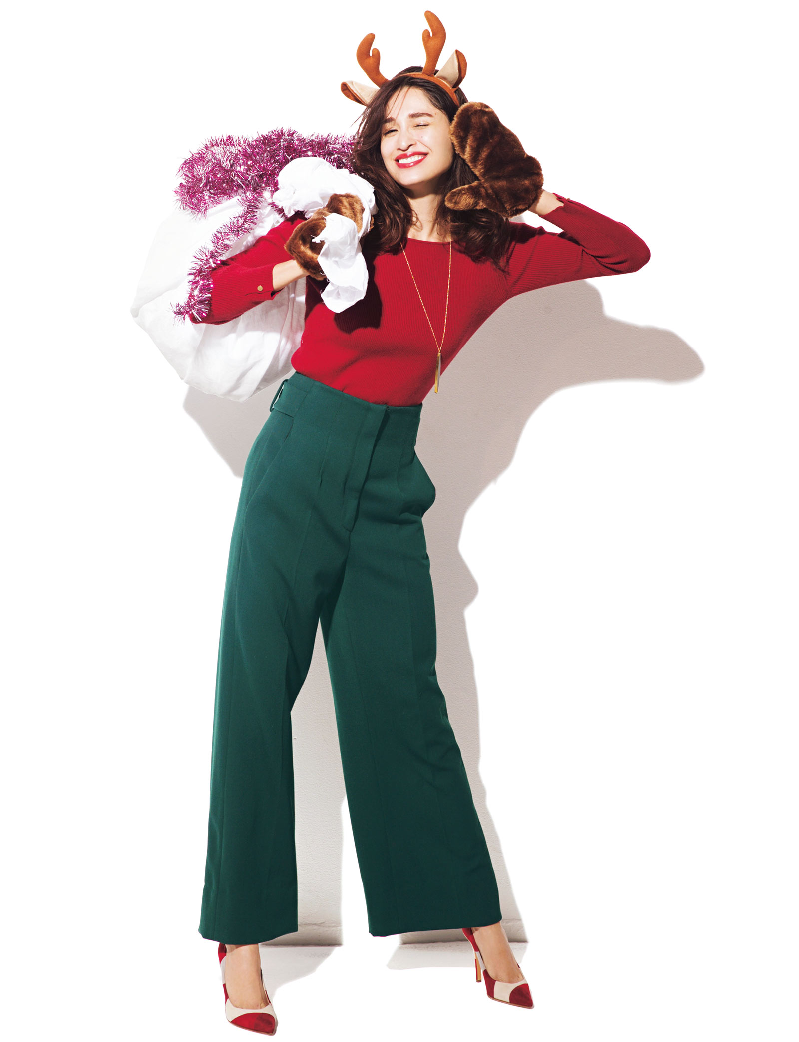 コスメブランドのクライアントに依頼されたクリスマスイベント。「大人限定で品よく華やかに盛り上げてほしい」となかなか難しいオーダー。会場の希望的にもあんまりふざけたコスプレはNGっぽいな…。そんなときに手持ちのワードローブから思いついた、赤ニット×グリーンパンツ。まさにクリスマス♪おかげでゲストからも大好評! 持っててよかった~。パンプス¥59,000(ネブローニ/フラッパーズ)ロングネックレス¥12,020(ソコ/ZUTTOHOLIC)