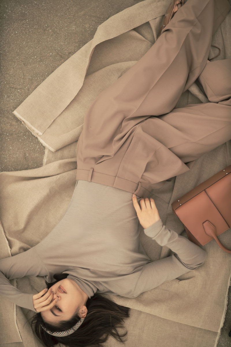 少しずつトーンの異なる色を重ねて着こなしにメリハリを出して