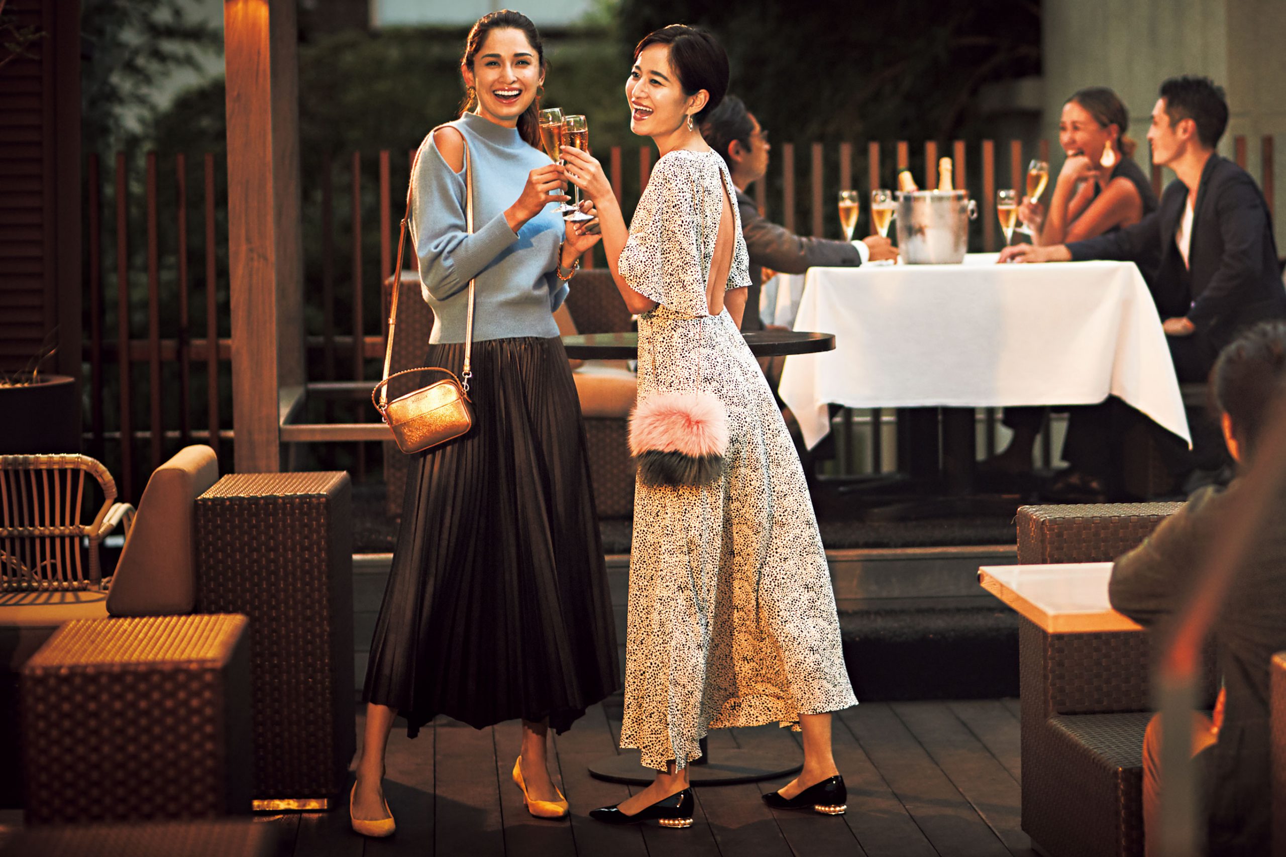 女子会、デート、飲み会…オープンエアでオシャレが盛り上がるいま、お出かけ服の条件は“テラス映え”一択!生活様式の変化とともに、女子会、デート、合コンなど、コミュニケーションの場もかつてのナイトシーンに代わり、オープンエアが主流に。暗い室内と開放的な屋外では、映える服も違います。リラックスしつつ華やかな、外飲みで着映えるお出かけスタイルで、ポジティブにオシャレ気分を上げて!