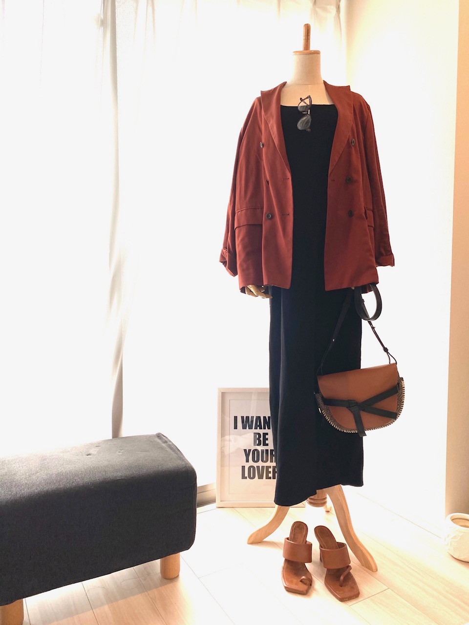 Onepiece:AKTE Jacket:6(ROKU) Bag:LOEWE Sandals:MARNI