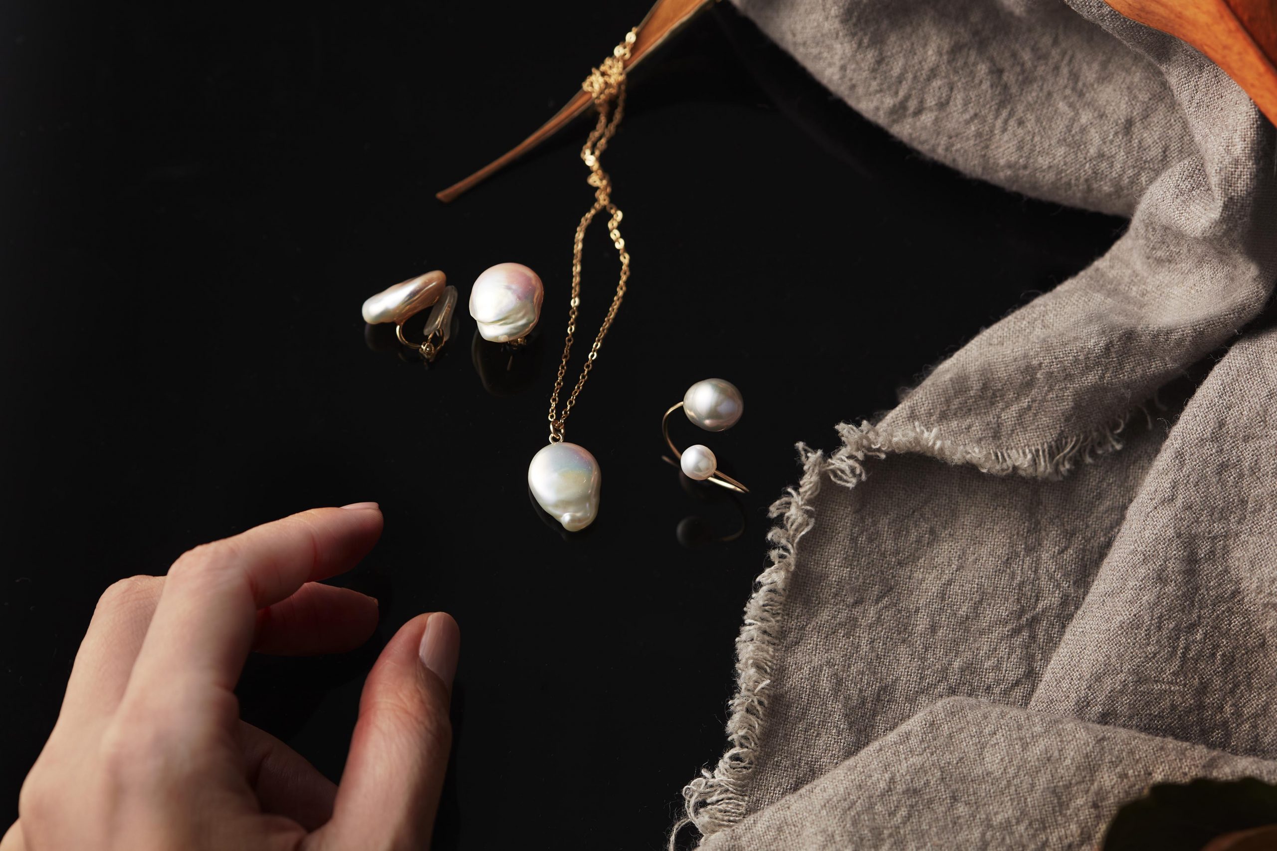 大事にしているのは自然観。有機的な素材や形状にフォーカスしたアクセサリーやジュエリーを展開。天然パールや天然石は、デザイナー自ら国内外に足を運び、独自の視点でセレクト。
