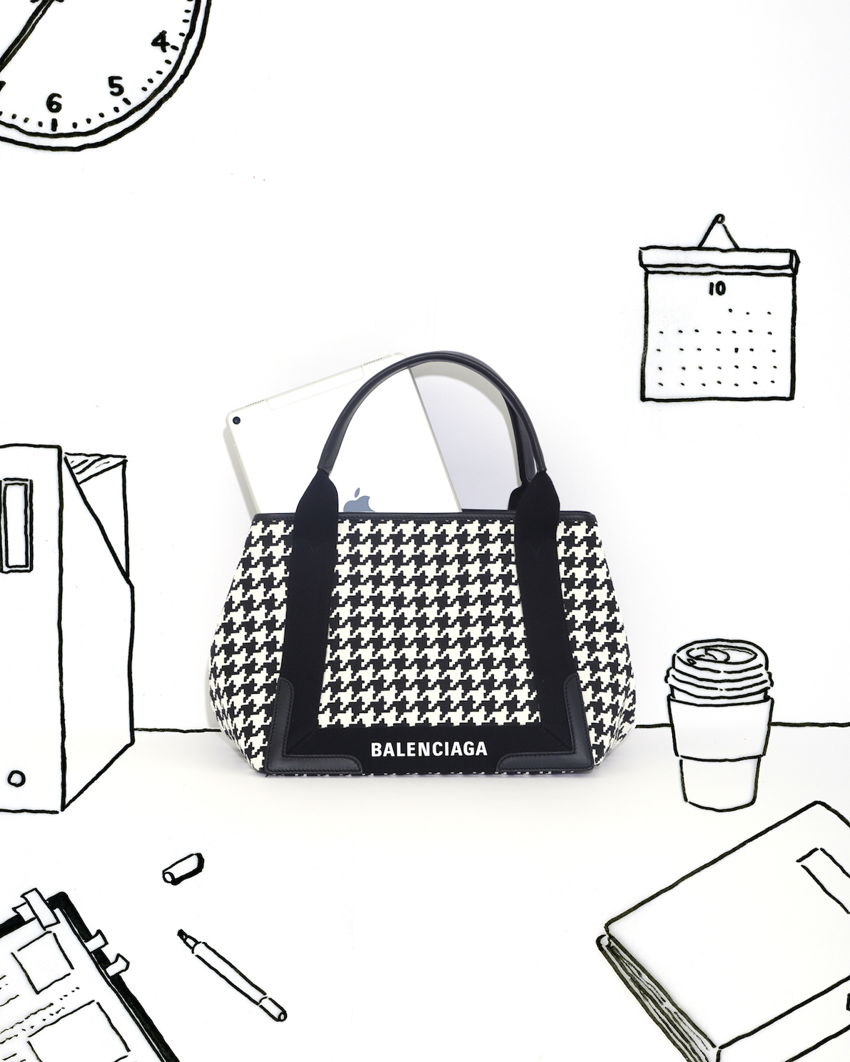 人気トートの新作は千鳥格子柄。便利なポーチ付きで機能性も文句なし。バッグ「NAVY S CABAS」〈H24×W31×D19〉¥132,000(バレンシアガ/バレンシアガ クライアントサービス)