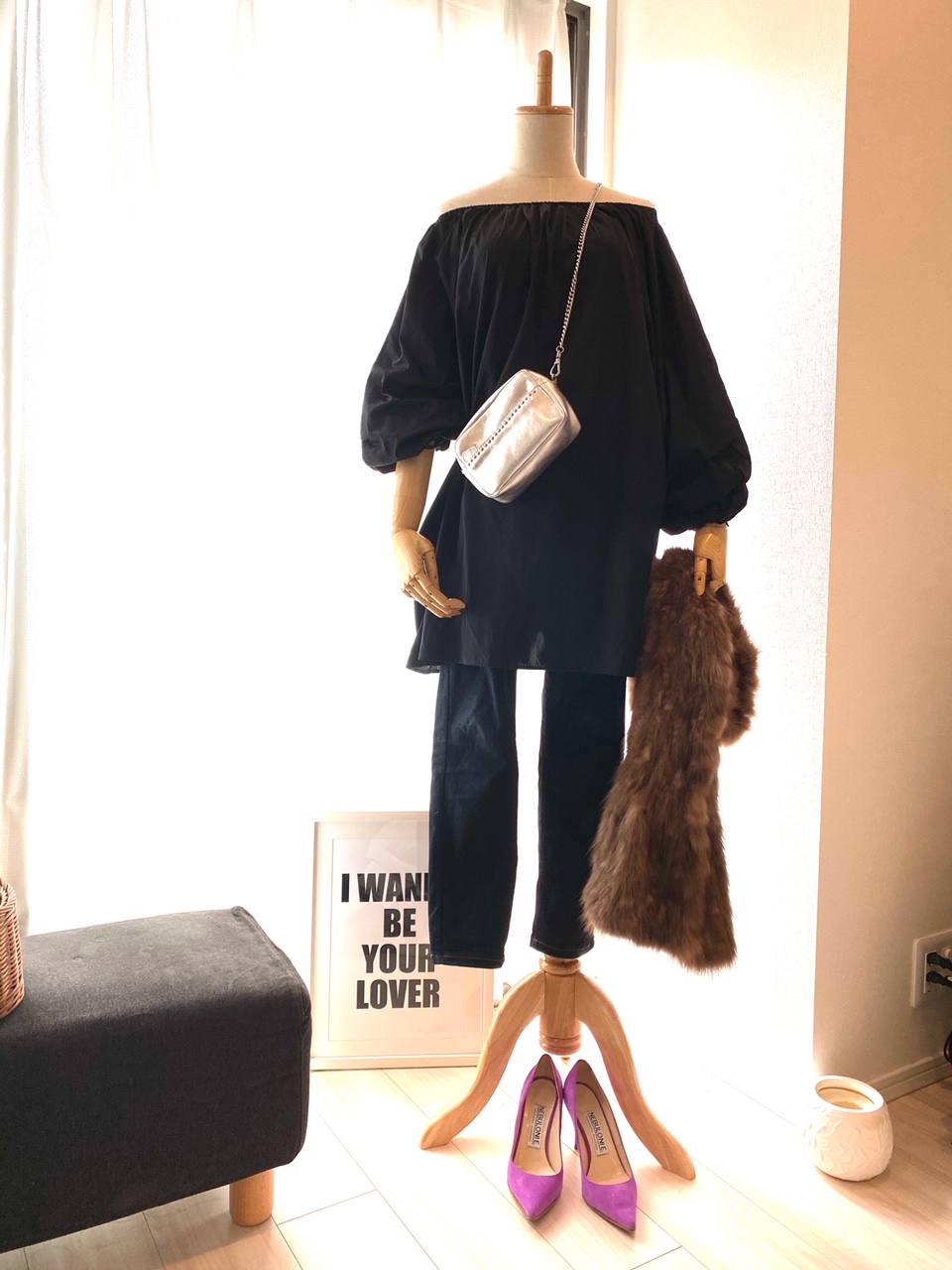 DENIM:UNIQLO、Tops:Whim Gazette、Bag:J&M DAVIDSON、Shoes:NEBULONI E.、Fur Stall:NO BRAND