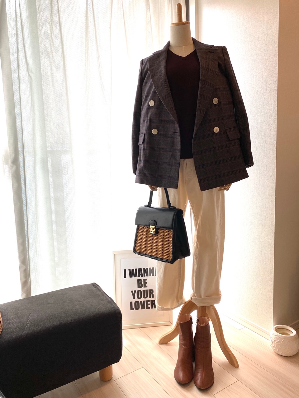 DENIM:Shinzone、Knit:UNIQLO、Jacket:THE NEWHOUSE、Bag:eb.a.gos、Boots:Acne Studios