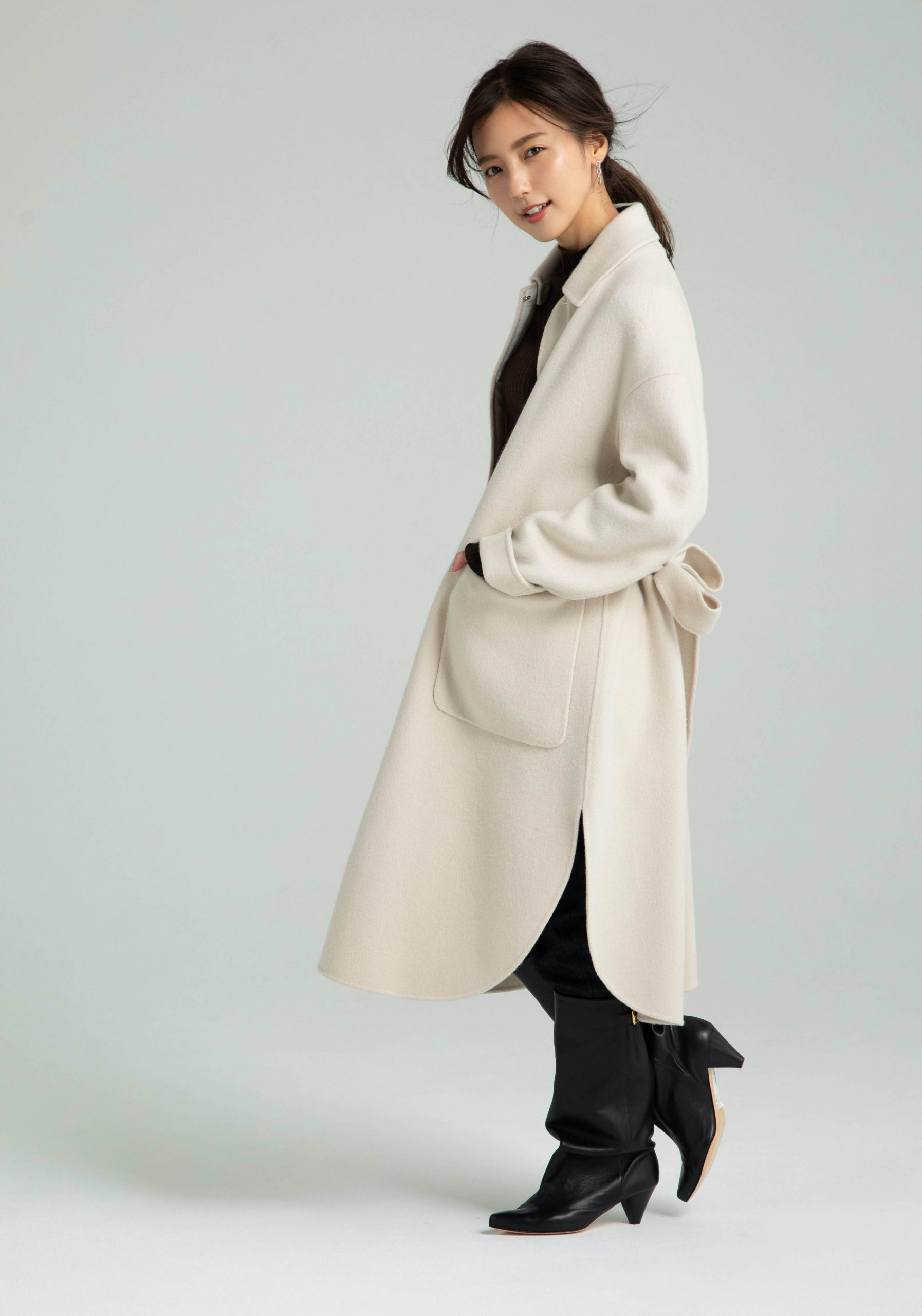 厚手の生地であっても、柔らかな素材感と明るめカラーを選べば、さらっと軽く羽織れて重く見えません。コート¥45,000(アクアガール/アクアガール渋谷)ニット¥9,000(シップス エニィ/シップス エニィ 渋谷店)デニムパンツ¥19,000(レッドカード/ゲストリスト)バッグ¥38,000(ヴァジック/ヴァジック ジャパン)ブーツ¥84,000(ネブローニ/フラッパーズ)ピアス¥50,000(VUGAS/イセタンサローネ 東京ミッドタウン)